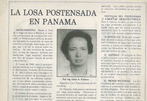 Haciendo Historia…La Losa Postensada en Panamá (Año 1987). Artículo del Ing. César A. Kiamco, extraído de Revista de la SPIA.